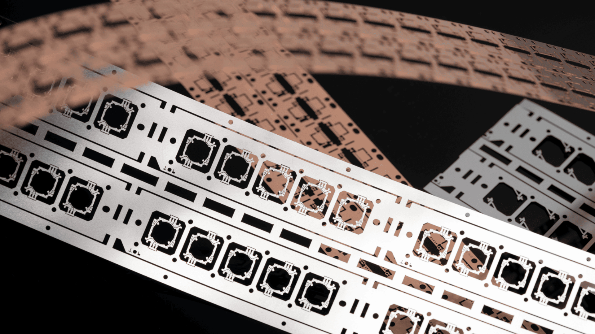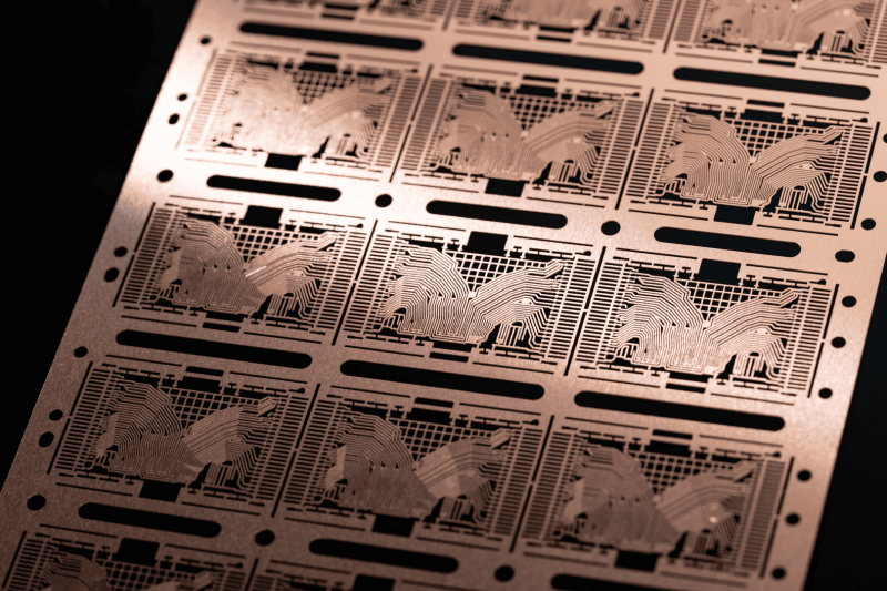 導線架 針對極小、極薄、形狀複雜的導線架產品提供精密蝕刻品質,可滿足沖壓無法達成的半蝕超精密要求。卷料生產, 有利於客戶後續電鍍製程加工省成本。可滿足少量多樣需求。 產品應用: 光學元件(LED)、IC、功率元件等, 例如: QFN, EMC, CLIP, TSOP, OMP, etc. 產業運用: 車用產業 工控產業 醫療產業